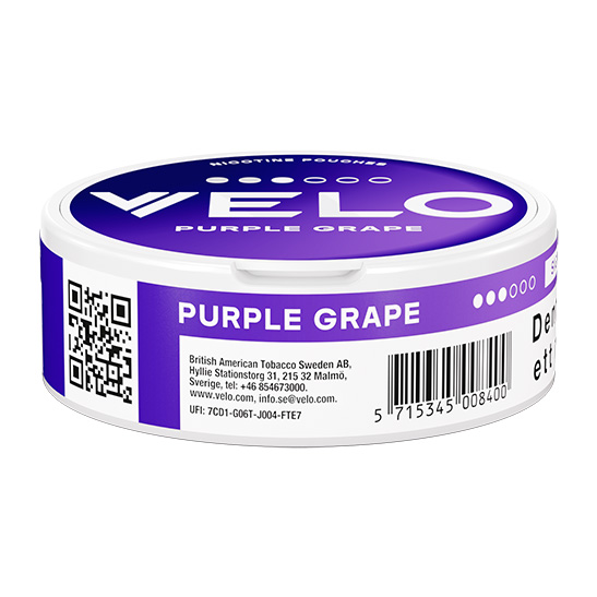 VELO Purple Grape levereras i ett slim-format, vilket innebär att prillorna är smalare än standard och sitter diskret under läppen. Produkten är helt tobaksfri och tillverkad av British American Tobacco (BAT), vilket garanterar en hög och jämn kvalitet med en hållbarhet på ca 12 månader. Med en nikotinhalt på 10 mg per portion ger den en rejäl kick utan att kompromissa med passformen.