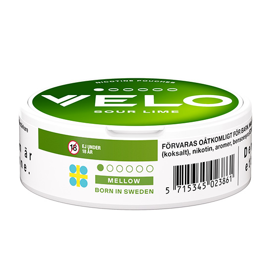 VELO Sour Lime levereras i ett mini-format, vilket är VELO:s minsta och mest diskreta prilla, framtagen för att sitta helt osynligt under läppen. Produkten är helt tobaksfri och tillverkad av British American Tobacco (BAT). Prillorna har en lägre fuktighet (35 %), vilket bidrar till en kontrollerad frisättning av smak och nikotin samt minimal rinnighet. Med en nikotinhalt på 4 mg per portion ger den en lätt och behaglig upplevelse för daglig användning.