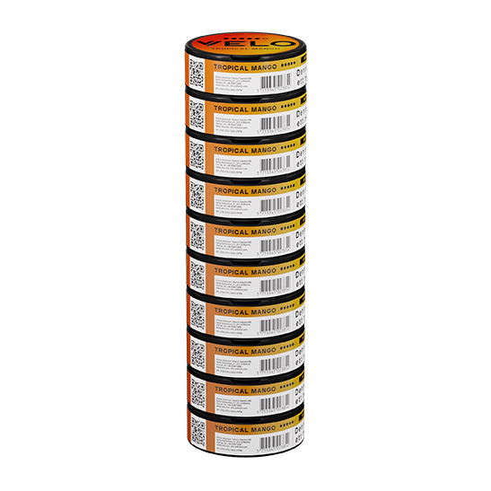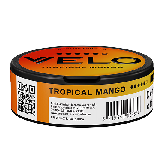 VELO Tropical Mango levereras i ett slim-format, vilket innebär att prillorna är smalare än standard och sitter diskret under läppen. Produkten är helt tobaksfri och tillverkad av British American Tobacco (BAT), vilket garanterar en hög och jämn kvalitet med en hållbarhet på ca 12 månader. Med en nikotinhalt på 14 mg per portion (2%) ger den en rejäl kick utan att kompromissa med den smidiga passformen.