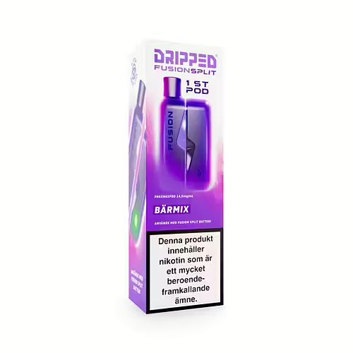 ⚠️ Batteri ingår ej:Denna produkt avser endast en (1) pod. För att använda denna produkt krävs en Dripped Fusion Split-batterienhet. Om du inte redan har ett batteri kan du köpa det separat här på NordicNikotin.se.