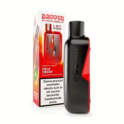 ⚠️ Batteri ingår ej:Denna produkt avser endast en (1) pod. För att använda denna produkt krävs en Dripped Fusion Split-batterienhet. Om du inte redan har ett batteri kan du köpa det separat här på NordicNikotin.se.