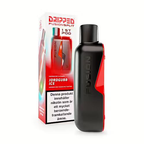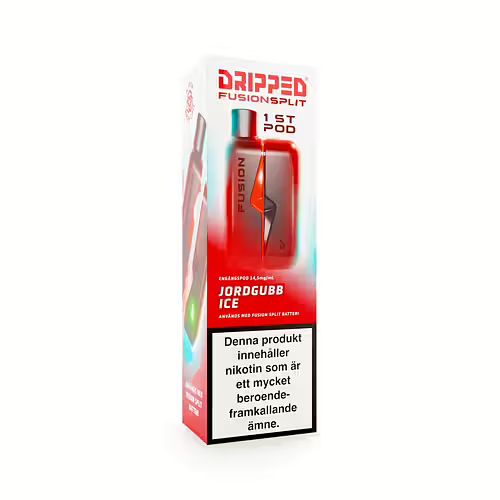 ⚠️ Batteri ingår ej:Denna produkt avser endast en (1) pod. För att använda denna produkt krävs en Dripped Fusion Split-batterienhet. Om du inte redan har ett batteri kan du köpa det separat här på NordicNikotin.se.