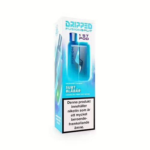 Utforska den karaktärsfulla smaken av Surt Blåbär med Dripped Fusion Split. Denna pod kombinerar djupa, söta toner av skogens blåbär med en distinkt, syrlig twist som ger en spännande och uppfriskande vape-upplevelse. Den är designad för enkelhet och kvalitet, vilket gör den till ett utmärkt val för daglig användning.
