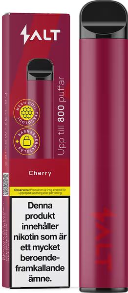 Salt Switch Cherry levereras i det signifikanta slimmade aluminiumhöljet som inte bara ser exklusivt ut utan också skyddar enheten. Med den integrerade Mesh-coil-teknologin får körsbärssmaken ett imponerande djup och en jämnhet som håller i sig genom alla 800 puffar. Tack vare användningen av nikotinsalt (20 mg) får du en tillfredsställande nikotinleverans med ett mjukt halsbloss, helt utan krångel.