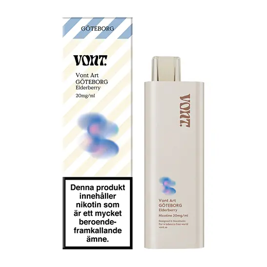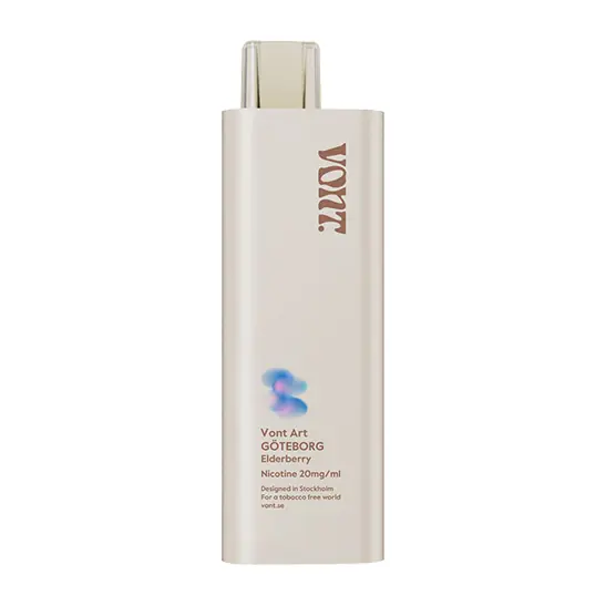Vont Art Göteborg Elderberry är en sluten engångsprodukt framtagen för maximal enkelhet. Enheten levereras redo att användas direkt ur förpackningen och kräver varken laddning eller påfyllning av e-vätska. Den slimmade, handhållna designen saknar knappar och aktiveras automatiskt vid inhalering.