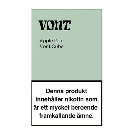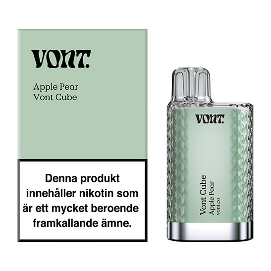 Vont Cube Apple Pear erbjuder en krispig och harmonisk smakupplevelse där söta päron möter friska äpplen. Som en av nyheterna inför 2024 introducerar Vont sin innovativa "Cube"-serie – en kompakt, kubformad engångsvape som är designad för att ligga perfekt i handen och vara enkel att bära med sig.