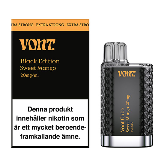 Vont Cube Black Edition Sweet Mango är en del av en exklusiv lansering inför 2024, framtagen för dig som söker en extra intensiv smakupplevelse. Denna "Black Edition" kombinerar den söta, tropiska smaken av mango med friska inslag av mandarin, toppat med en rejäl dos extra ice för en maximalt kylande effekt.