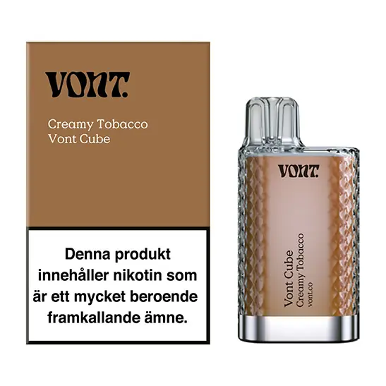 Vont Cube Creamy Tobacco erbjuder en fyllig och sofistikerad smakupplevelse för dig som föredrar traditionella toner med en modern twist. Smaken är en genomtänkt tolkning av tobak som kompletteras av mjuka noter av kaffe och choklad, vilket ger en djup och krämig karaktär.