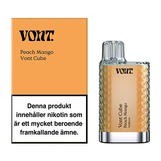 Vont Cube Peach Mango erbjuder en solig och tropisk smakupplevelse där söta, mjuka persikotoner möter fylliga inslag av mango. Som en del av Vonts innovativa "Cube"-serie har denna engångsvape en kompakt och modern kubdesign som skiljer sig från traditionella modeller och ger en unik känsla i handen.